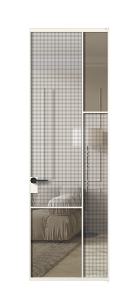 АЛПЛ041.12 Алюминий пудровый белый Декоративное стекло с сеткой "Mesh silver", триплекс, 6 мм + Прозрачное бронзовое стекло, триплекс, 6 мм